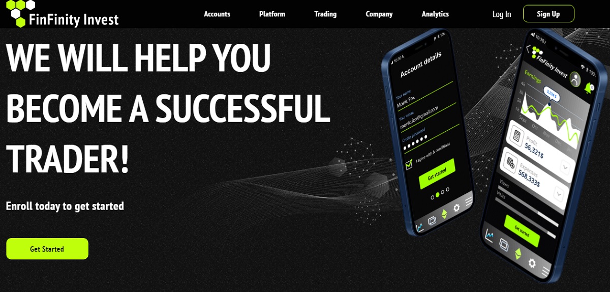 Finfinityinvest.com is a broker for trading online through a quality and user friend online trading platform. You can read our FinFinity Invest review today to learn all about them. We have given them a score of 4.4/5. You can visit their website and sign up through the link below to start trading.